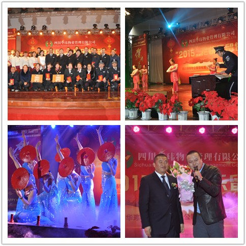 華瑋的春晚秉承12年來(lái)的傳統草根文化,整場(chǎng)晚會(huì )的所有節目均是由各項目員工自編自導自演的。一場(chǎng)炫麗的燈光秀將舞臺點(diǎn)亮!晚會(huì )在《中國美》悠揚婉轉的歌聲中,在激昂鮮艷的飛舞紅旗中,在激動(dòng)人心的鼓點(diǎn)陣陣中正式拉開(kāi)帷幕。五位主持人專(zhuān)業(yè)的水平和幽默風(fēng)趣的主持風(fēng)格讓整場(chǎng)晚會(huì )生動(dòng)不少。一曲蘊含中國風(fēng)的《女兒情》,首先帶領(lǐng)在場(chǎng)觀(guān)眾感受了中國五千年的書(shū)法文化和古典舞蹈結合的奧妙所在,一支太極拳,更是讓觀(guān)眾體驗了國粹的精髓。富有創(chuàng )新性的情景劇舞蹈《我相信我可以》,展示出了項目保潔大姐們的風(fēng)采。讓同事們精彩紛呈的節目更引來(lái)了不斷的掌聲與喝彩聲。歐菲物業(yè)陳總為大家帶來(lái)了一首《歌曲串燒》并祝愿華瑋的明天蒸蒸日上,民生銀行行長(cháng)楊總一曲溫馨的《祝?!氛{動(dòng)大家一起祝福2015,都江堰物業(yè)協(xié)會(huì )馬會(huì )長(cháng)獻唱的一首《兄弟》,唱出了與華瑋的兄弟情誼。整場(chǎng)晚會(huì )高潮迭起,歡笑不斷,最后在《難忘今宵》的歌聲中,晚會(huì )緩緩落下了帷幕。此時(shí)此刻,收獲的喜悅,奮斗了整整一年的輕松,風(fēng)風(fēng)雨雨攜手共進(jìn)。