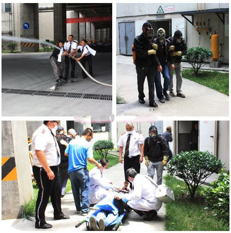 炎炎夏日是各類(lèi)安全事故的高發(fā)期,為保障業(yè)主人身、財產(chǎn)和物業(yè)設施設備的安全,增強全體員工的安防意識、提高項目義務(wù)消防人員的突發(fā)事件應急處理能力,5月15日下午,成都忠信物業(yè)在大合倉項目舉行了2015上半年消防、液氨應急預案演習。此次演習特邀了武侯區安監局張部長(cháng)、德意達物流公司林總、大合倉業(yè)委會(huì )主任徐文先生等出席,公司副總經(jīng)理吳君女士及部分業(yè)主和相關(guān)人員一同到場(chǎng)觀(guān)摩。