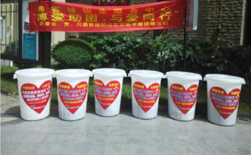 2015年6月19日,志愿者協(xié)會(huì )拉來(lái)了12個(gè)大塑料桶分別放置在弗客城、弗客水岸兩個(gè)項目,用于裝捐贈物品。項目物業(yè)服務(wù)中心及時(shí)發(fā)出通知,加大宣傳、動(dòng)員力度,在項目全體員工的配合下,廣大業(yè)主積極響應,紛紛拿出自家的衣物、書(shū)籍、書(shū)包、鞋帽等日常物資,自覺(jué)裝進(jìn)大桶內。由于數量較大,小區每天收納的物品都能裝上一大車(chē)。今年冬天,總算能讓貧困山區的一大批孩子們不再挨凍了,同時(shí)也解決了孩子們的一些學(xué)習用品欠缺的難題。雖然這些物資微不足道,但它代表的是廣大業(yè)主們的一片心意,這也是他們能積極參與到這次公益活動(dòng)的最終目的。