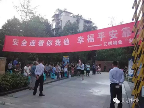 我們將燃氣使用常識、電梯自救常識、電氣安全、防火防盜等日常生活常見(jiàn)的居家安全知識以現場(chǎng)有獎問(wèn)答形式,向業(yè)主們進(jìn)行了廣泛的宣傳。項目秩序部付主管還向業(yè)主們演示了滅火器的正確使用方法,并請業(yè)主進(jìn)行了現場(chǎng)操作體驗,業(yè)主們積極參與、熱情高漲。期間,艾明特勤隊的隊員還為業(yè)主們表演了精彩的拳術(shù),展示了艾明人的良好風(fēng)采!暑期正值旅游旺季,和邦國際旅行社的工作人員還為業(yè)主介紹了旅行緊急自救和境外旅游注意事項等旅游安全常識。最后,我們還為小區軍人業(yè)主送上了精美禮物,以表達我們對他們的敬意和祝福!