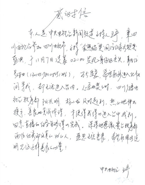 在這三天時(shí)間里,民興物業(yè)廣電項目部通過(guò)全體員工的共同努力,圓滿(mǎn)的完成了此次接待任務(wù)。與此同時(shí),11月8日,項目部收到一封來(lái)自中央電視臺主持人王寧的感謝信。原來(lái)在11月8日凌晨2時(shí),中央電視臺主持人王寧發(fā)現自己的身份證丟失,又急于趕回北京直播節目,萬(wàn)分焦急來(lái)到廣電門(mén)口想進(jìn)臺尋回丟失的證件。當班執勤人員按臺規定不允許進(jìn)入,但同時(shí)上報當班值班班長(cháng)。值班班長(cháng)了解情況后,考慮到丟失身份證和回京直播的特殊性,同意王寧進(jìn)臺,并與一名隊員一起陪同王寧在她所經(jīng)過(guò)的區域尋找,在尋找的過(guò)程中,得到證件已找到的消息,臉上露出了愉悅的笑容。
