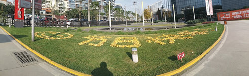 一進(jìn)201崗的大門(mén)大家就會(huì )在左手邊草坪上看到用銀杏葉擺出的笑臉和“節日快樂(lè )”。這些銀杏葉都是園區銀杏樹(shù)掉落下來(lái)的,我們把它們收集起來(lái),巧思構想,在園區進(jìn)出必經(jīng)之路上增添了別樣的風(fēng)采,也給業(yè)主們帶來(lái)了一絲驚喜。上下班途中不少業(yè)主朋友們都駐足觀(guān)看,合影留戀!大廳及四五樓門(mén)上也貼滿(mǎn)了圣誕節的貼畫(huà),使得圣誕氣氛更加濃烈。走進(jìn)大廳大家會(huì )看到一個(gè)大大的雪屋和圣誕樹(shù),雪屋的門(mén)前還站著(zhù)可愛(ài)的麋鹿一家,還有雪娃娃,鐵搭等裝飾物。把小彩燈一開(kāi),整個(gè)雪屋和圣誕樹(shù)都閃著(zhù)五顏六色的光芒,好看極了!當然最重要的環(huán)節就是由我們員工扮演的兩位圣誕老人給業(yè)主朋友們派禮物啦!我們平安夜和圣誕節這兩天會(huì )給業(yè)主朋友們發(fā)送圣誕小禮物。凡是經(jīng)過(guò)的業(yè)主都興奮的跑來(lái)領(lǐng)取蘋(píng)果、糖果等小禮品,場(chǎng)面很是熱鬧呢!在帶給大家驚喜的同時(shí),也讓業(yè)主朋友們感受到了我們物業(yè)的用心。