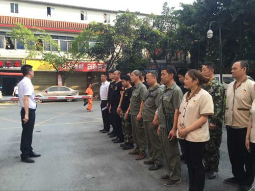 各下屬項目根據公司要求成立應急小組,對以下三種情況進(jìn)行演練:一、在值班、巡視過(guò)程中降雨、降暴風(fēng)雨情況;二、當接到市防洪指揮部發(fā)布暴雨信號情況;三、暴雨成災,停車(chē)場(chǎng)被淹情況。隨著(zhù)各項目總指揮一聲號令,防汛應急演練正式開(kāi)啟?,F場(chǎng)搶險堵水組、技術(shù)指導組、搬運物資組、通訊組、保潔組在崗位上各司其職,協(xié)調作戰,迅速將險情有效控制,保障了人民群眾生命財產(chǎn)安全。此次演練在各項目業(yè)主們的高度贊賞中圓滿(mǎn)落下帷幕。