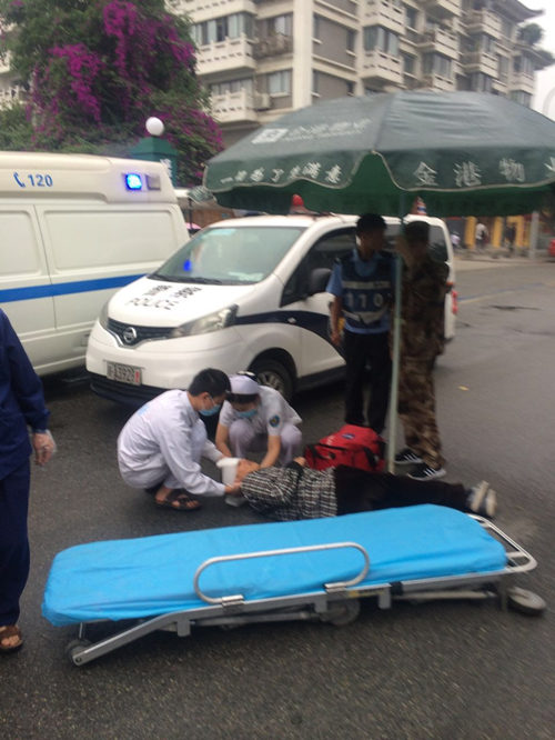 在一品天下D區小區門(mén)口,一騎電瓶車(chē)中年男士被汽車(chē)撞倒,昏厥在地,汽車(chē)逃逸,門(mén)崗當值人員李星宇發(fā)現事故情況,并沒(méi)有慌張,在第一時(shí)間對講通知了代班班長(cháng)唐昌文。班長(cháng)唐昌文趕赴現場(chǎng)沉著(zhù)冷靜地組織救助,現場(chǎng)秩序井然,救援工作有條不紊的展開(kāi),由李星宇為傷者撐傘,唐昌文、楊正平電話(huà)聯(lián)系110及120救護車(chē),一品天下的工作人員們一直堅守在事故現場(chǎng),安撫群眾情緒,協(xié)助保護現場(chǎng)及傷員。一直到110、120救護工作人員趕赴現場(chǎng),將傷者送到醫院,大家才長(cháng)松了一口氣,隨后立即積極配合協(xié)助警察記錄案情經(jīng)過(guò)。