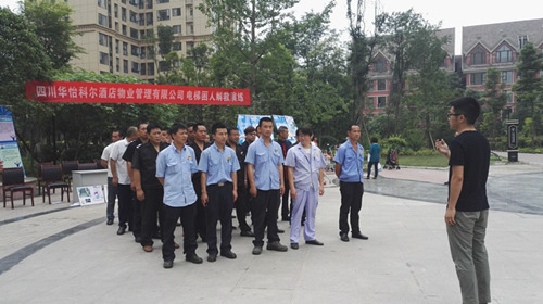 為進(jìn)一步提高華怡科爾物業(yè)員工對電梯困人事件的應急反應速度和處置能力,讓業(yè)主了解電梯安全乘坐知識,2016年6月23日上午9:30點(diǎn),華怡科爾物業(yè)公司攜手奧的斯電梯廠(chǎng)家在東山國際新城H2區開(kāi)展了電梯困人應急演練。參加此次演練的物業(yè)人員有東山國際新城各小區的項目經(jīng)理、主管、工程人員、客服人員、秩序維護人員等,并邀請了業(yè)主代表參加。